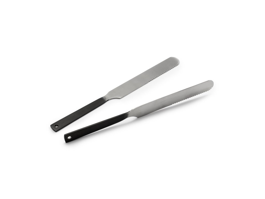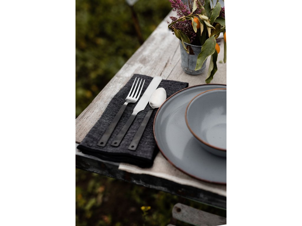 Příborová sada Barebones přináší jedinečný styl a praktičnost, který se skvěle hodí jak do domácnosti, tak na venkovní stolování. Její minimalistický design s prvky průmyslové estetiky zaujme na první pohled. Lesklá nerezová ocel plynule přechází do matné karbonové úpravy, což dodává každému kusu unikátní vzhled, který dokonale ladí s kolekcí smaltovaného nádobí Barebones.