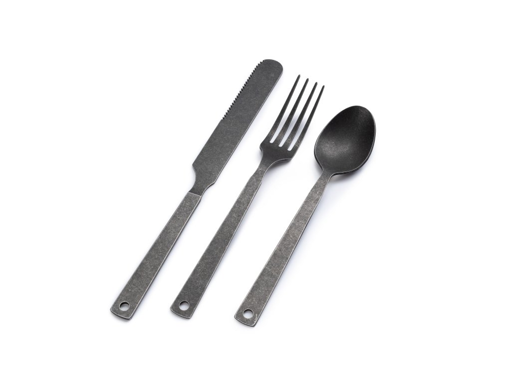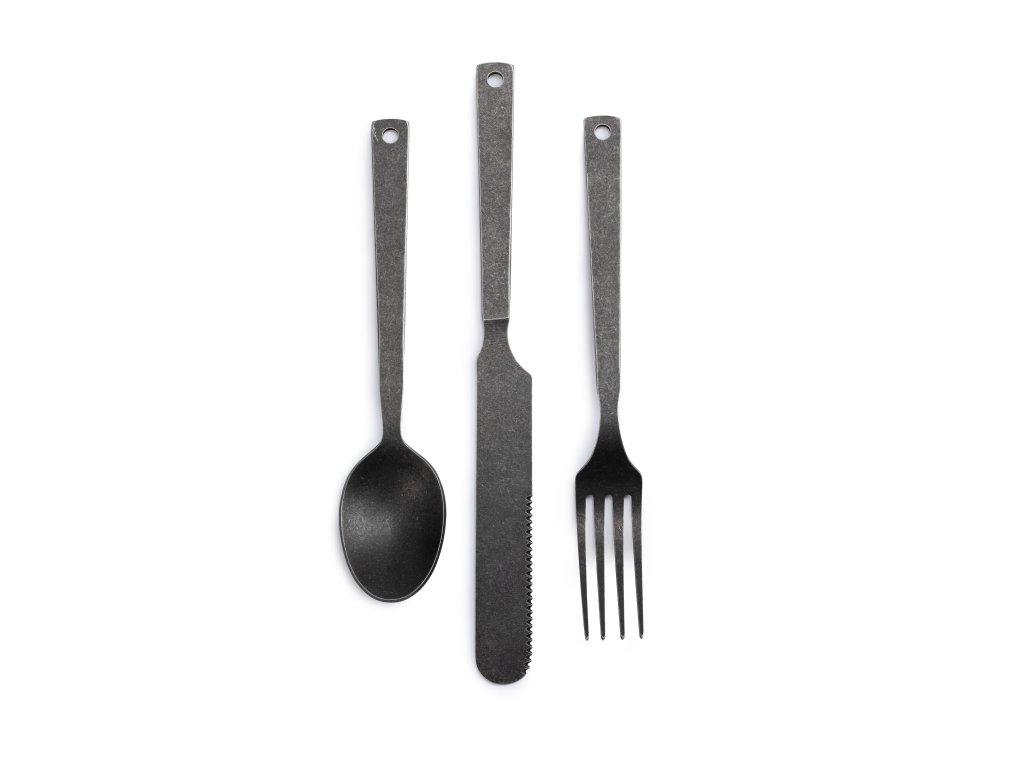Sada příborů Barebones je dokonalou kombinací minimalistického designu, odolnosti a funkčnosti. Díky černému oxidovému povrchu s jemně opracovaným opotřebovaným vzhledem přináší tato sada nový rozměr do vašeho stolování. Jedinečná textura povrchu vytváří vizuální kontrast, který dokonale ladí se smaltovaným nádobím Barebones.
