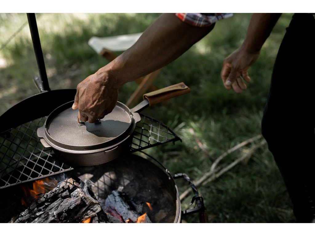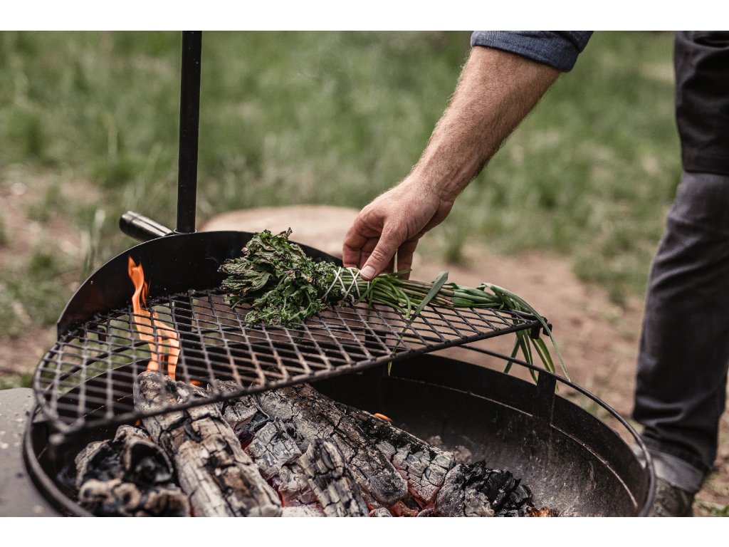Grilovací rošt ke Kovbojskému grilu Barebones byl navržen ve spolupráci se šéfkuchaři specializujícími se na vaření na otevřeném ohni. Tento odolný a prostorný přídavný rošt poskytuje dostatek místa pro přípravu různorodých pokrmů – od burgerů přes zeleninu až po pečivo – ideální pro větší společenské akce nebo rodinné večeře pod širým nebem.
