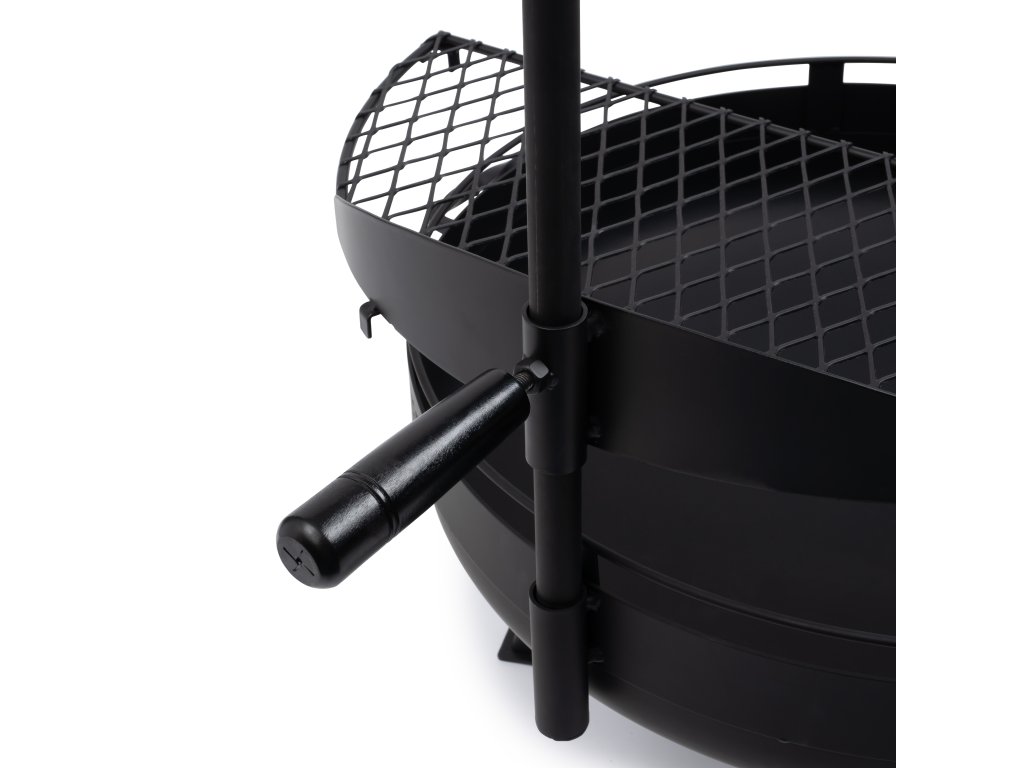 Vyroben z masivní oceli a doplněn ergonomickou rukojetí z topolového dřeva, která usnadňuje manipulaci a zároveň chrání ruce před teplem. Tento rošt je praktickým a spolehlivým doplňkem, který rozšíří možnosti vašeho Kovbojského grilu.