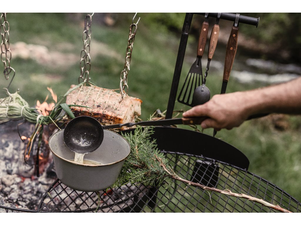 Kovbojská grilovací naběračka Barebones – stylový a praktický pomocník pro servírování u ohně