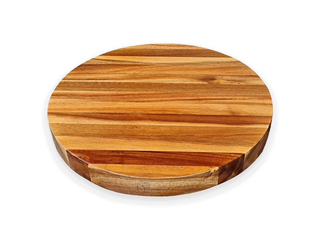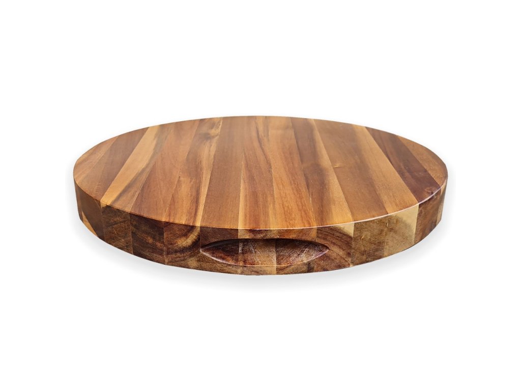 Kulaté krájecí a dranžírovací akáciové prkénko 380x30 mm