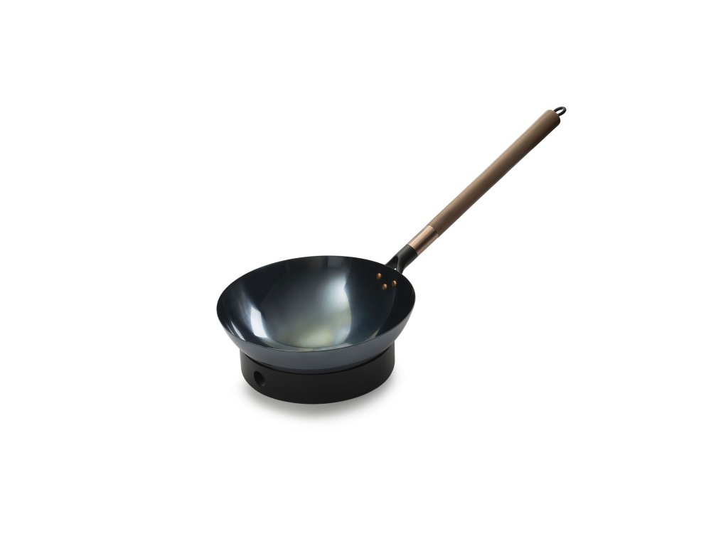 - Stabilní stojan: Ocelový stojan udržuje pánev ve správné poloze pro snadné vaření.