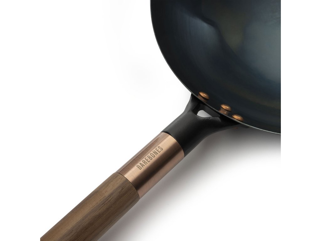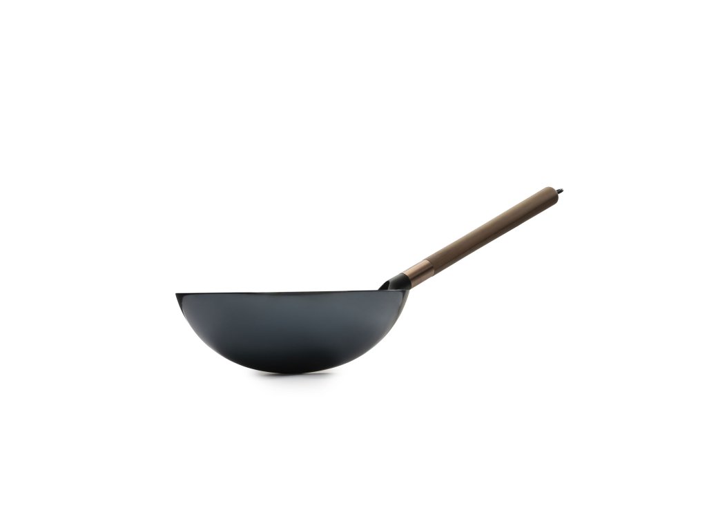 Tato pánev Wok s dlouhou rukojetí rozšiřuje vaše kuchařské možnosti a přináší tradiční design v moderním provedení. Vyrobena z odolné oceli o průměru 12", která je ručně kalená pro ochranu proti korozi a opotřebení. Díky extra dlouhé 18" rukojeti z ořechového dřeva nabízí bezpečnost a pohodlí při manipulaci, a její nerezové a měděné detaily chrání dřevo před plameny a zároveň přidávají estetický nádech.