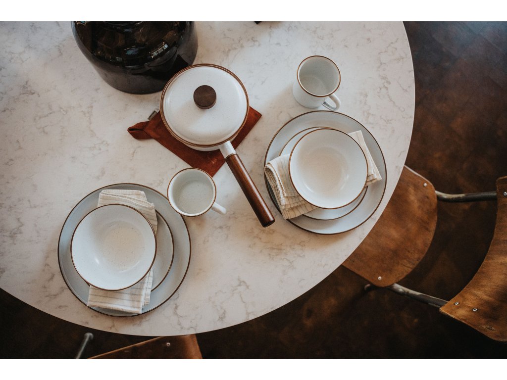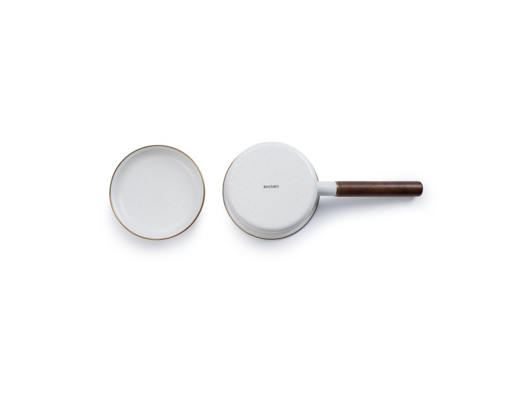 Rendlík z kolekce Enamel přináší spojení tradičního designu s moderními prvky. Každý kus je jedinečný díky ručně dokončenému okraji z pečené nerezové oceli, který vytváří jemnou bronzovou patinu. Jádro z pevné oceli se smaltovaným povrchem s jemným kropením zajišťuje nejen estetický vzhled, ale i odolnost a dlouhou životnost.