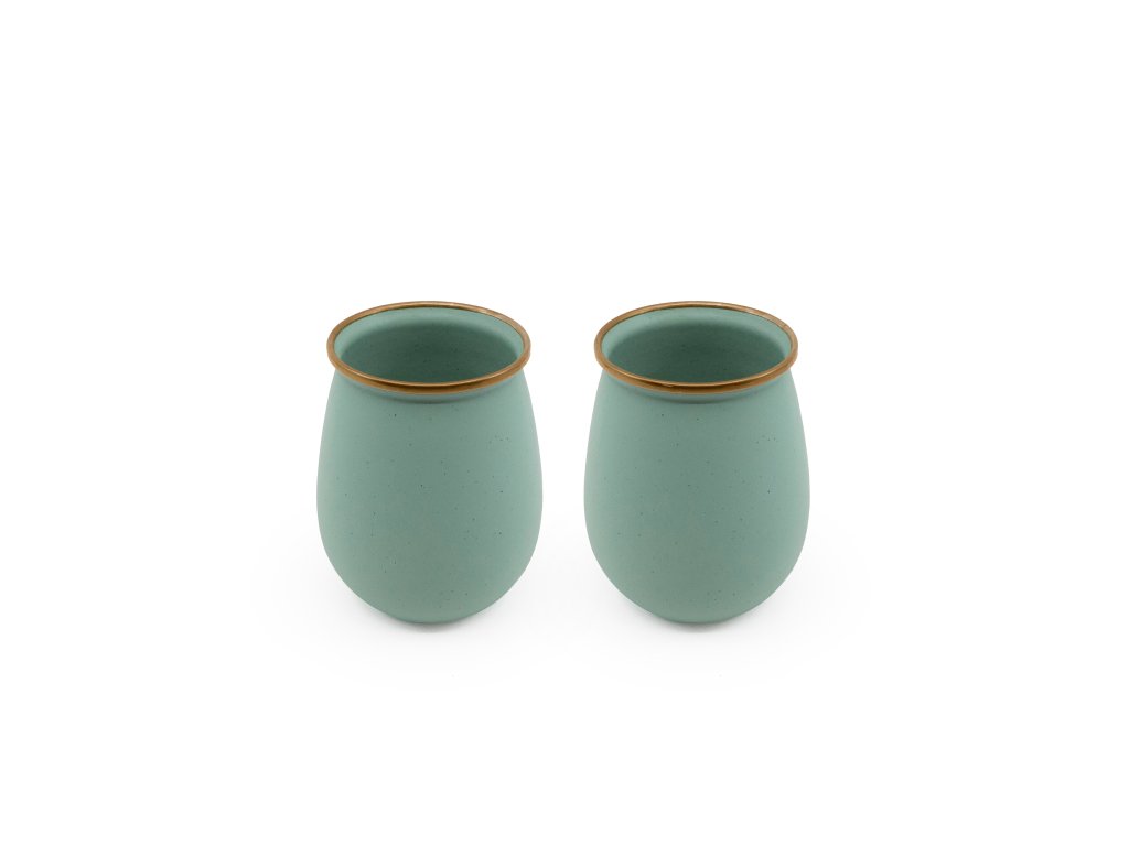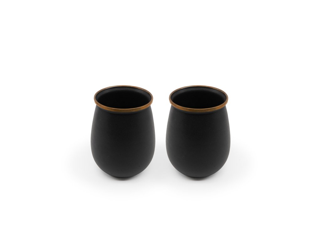 - Stylový design: Jemně kropenatý smaltovaný povrch a bronzový lem dodávají pohárkům sofistikovaný vzhled.