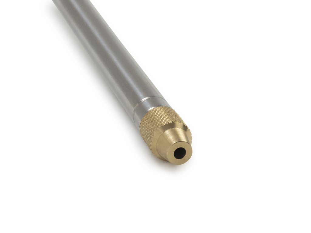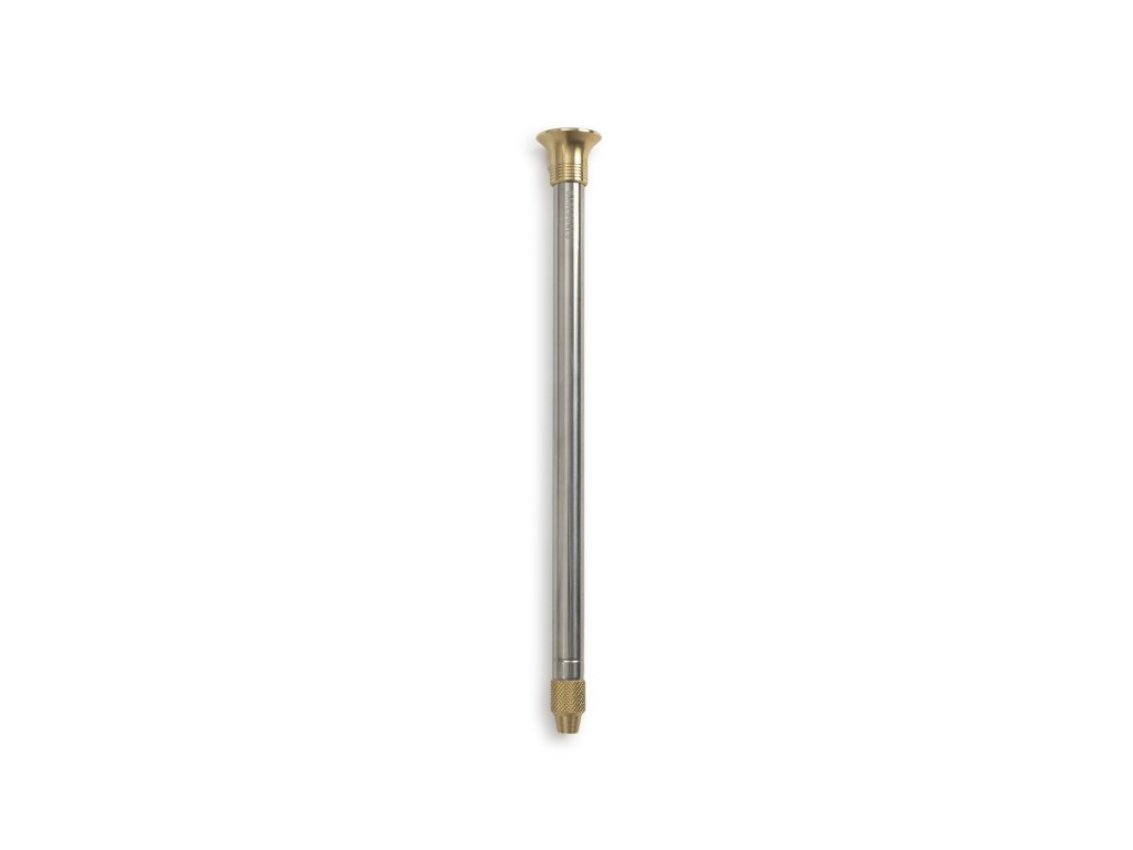| Materiály: | Mosazný náústek a výstupní tryska, teleskopické trubky z nerezové oceli, plastový jednosměrný ventil |