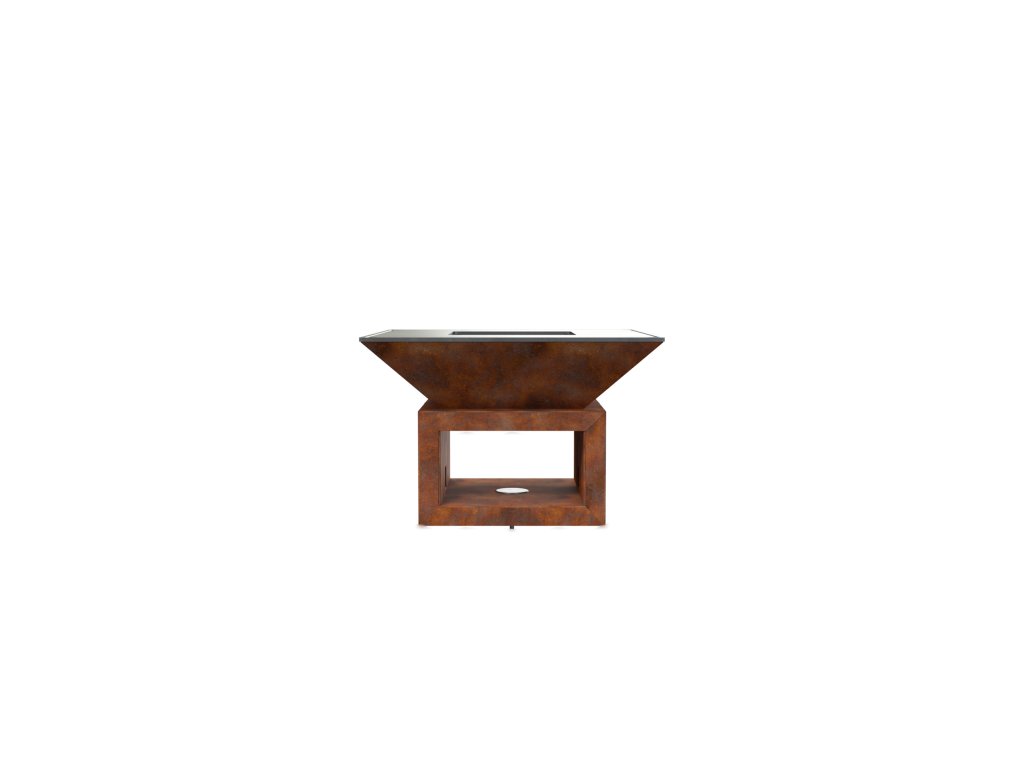 Tělo grilů Vulcanus je vyrobeno z vysoce jakostní oceli COR-TEN s patinou rubínové barvy, která byla původně používána pro stavbu lodí díky své odolnosti vůči vlhkému a slanému prostředí. COR-TEN je přírodní a ekologický materiál, který odolává všem povětrnostním vlivům a vyžaduje minimální údržbu. Díky tomuto materiálu mohou grily Vulcanus stát venku za každého počasí, a stále budou vypadat jako nové.
