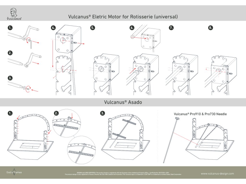 VULCANUS Pro730 & Pro910 Rotisserie + Electric Motor + Horizontal Extender